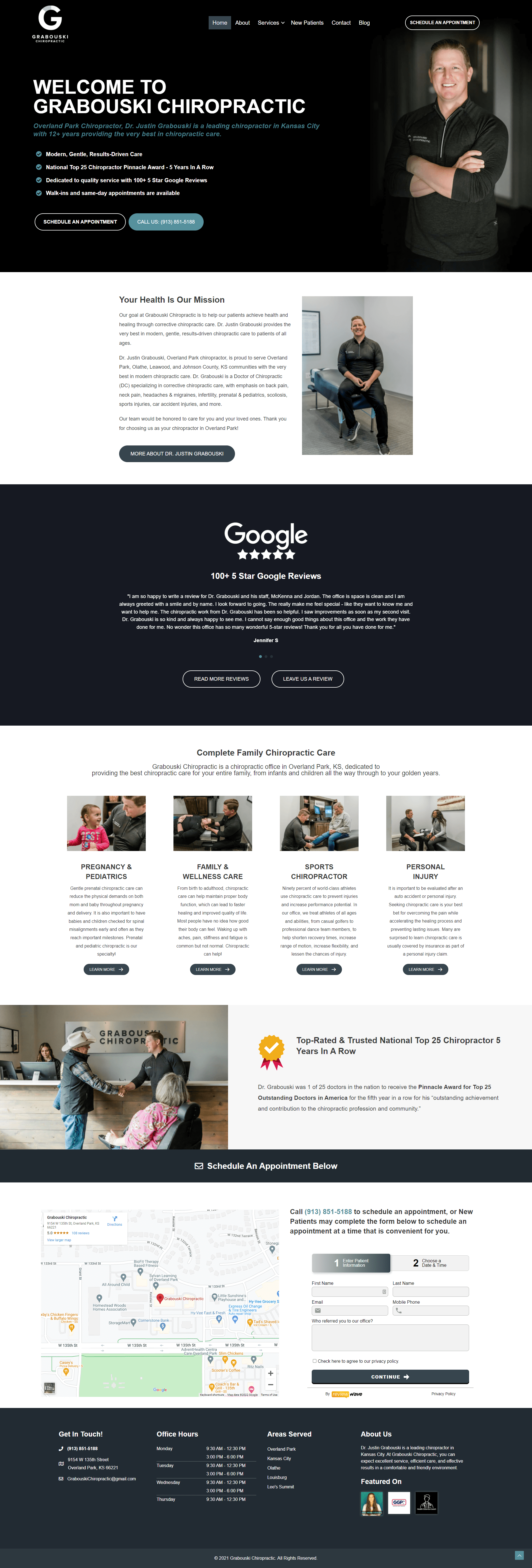 Dr. Justin Grabouski is an award-winning chiropractor in Kansas City with 12+ years of experience providing the very best chiropractic care to his patients. Grabouski Chiropractic is dedicated care to their patients’ entire families, from infants and children all the way through to their golden years. Grabouski Chiropractic came to CFM in November of 2021 for an SEO-First Website Redesign followed by an ongoing SEO blogging campaign. In just 6 weeks, his team had a brand new website and keywords ranking on page one of Google!